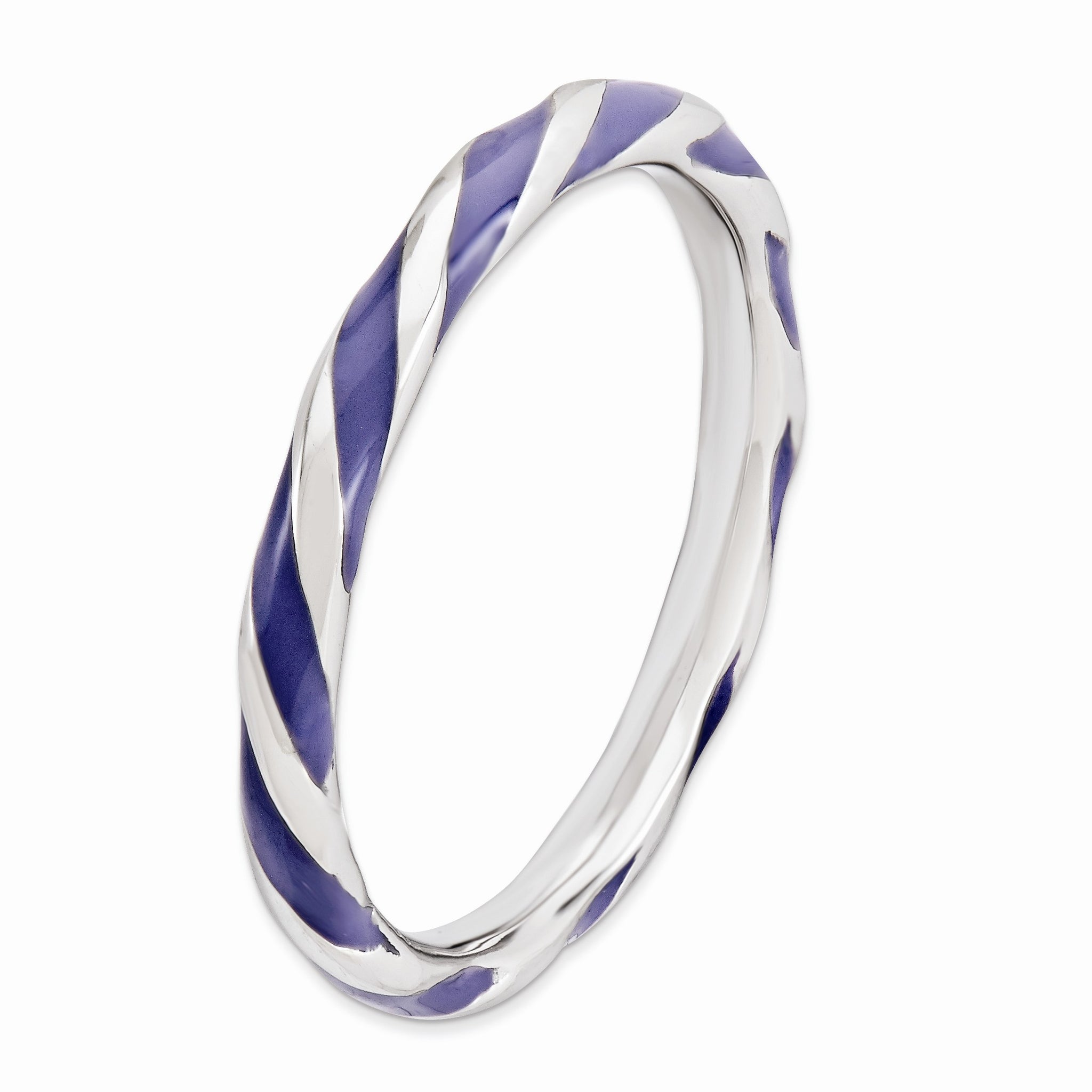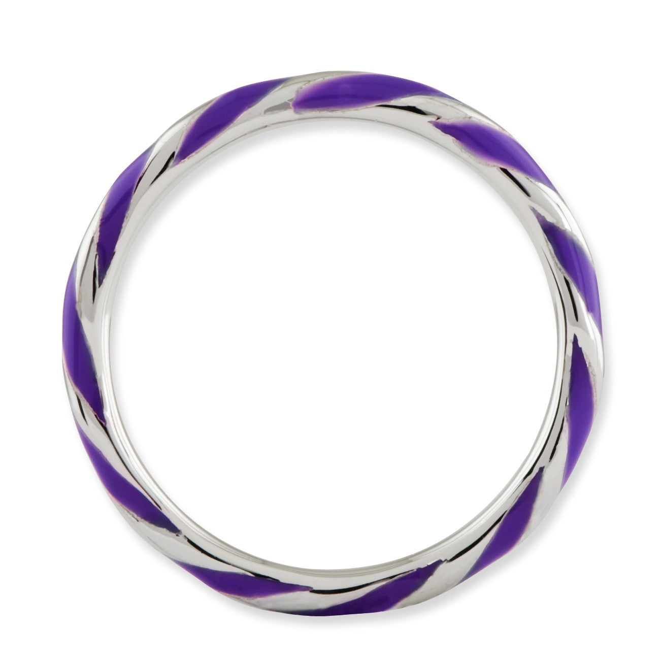 Create the perfect stack with enameled bands available in 10 vibrant colors. Featuring a twisted stripe of purple enamel this 2. Mm sterling silver band is finished with tarnish resistant rhodium plating so it will retain its bright white finish. Guaranteed to fit together perfectly with all of the mix and match Stackable Expressions rings.