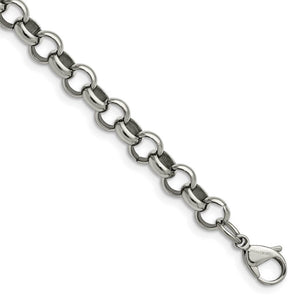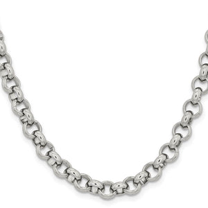 • Known for its stunning broad links, this 8mm, 24 inch rolo chain featuring a high polished finish is fashioned from 316L stainless steel and closes with a fancy lobster clasp.
