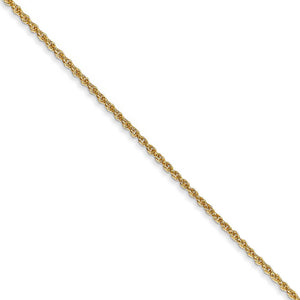 Lightweight and supple, a baby rope chain featuring a loose open link design of 14k yellow gold will display your favorite charm or pendant to perfection. Beautifully crafted with a polished finish, this approximate delicate 1.1mm width, 18-inch long necklace chain closes with an easy to use spring ring clasp.