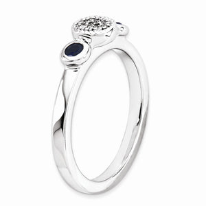 Sterling Silver Stackable Created Sapphire & .05Ctw HI/I3 Diamond Ring - Black Bow Jewelry Company