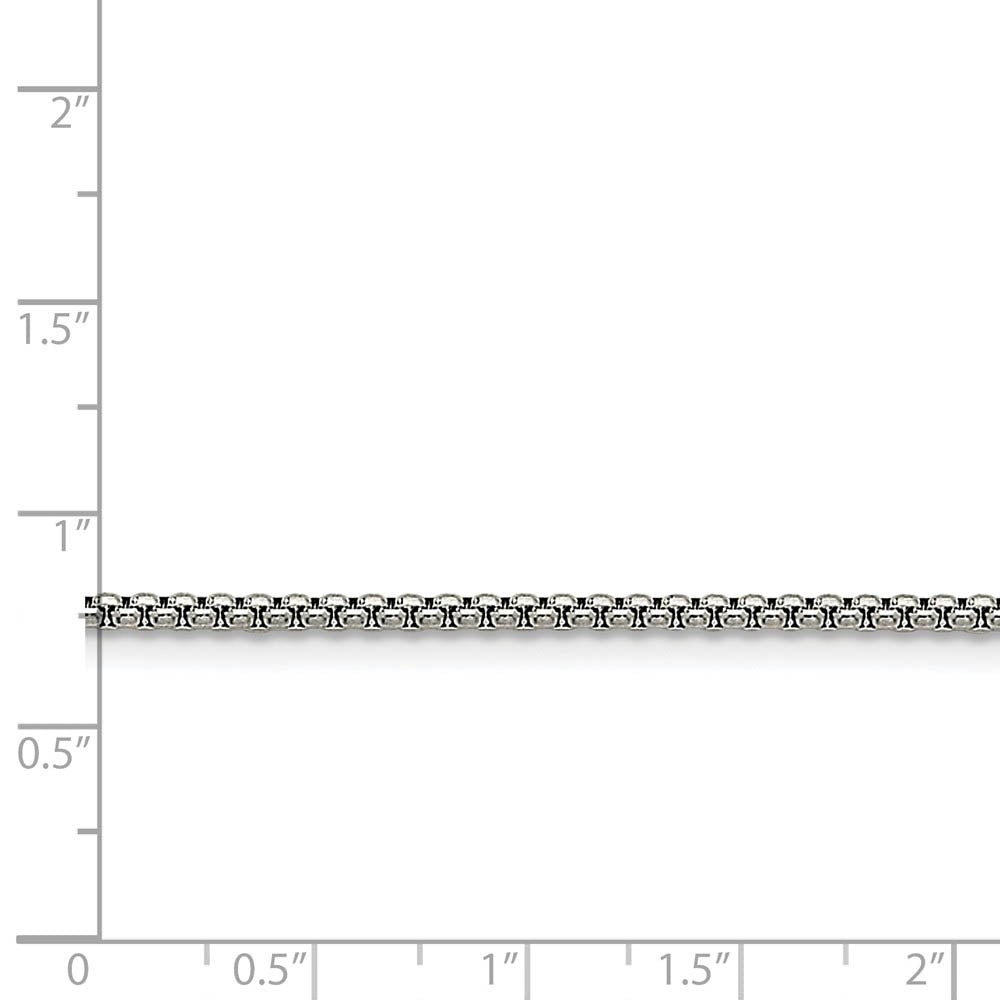Simplicity and glamour come together as one in this sleek, round box chain fashioned from durable stainless steel with a gleaming, polished finish. It measures 2.2mm in width, 16 inches in length and closes with a fancy lobster clasp.