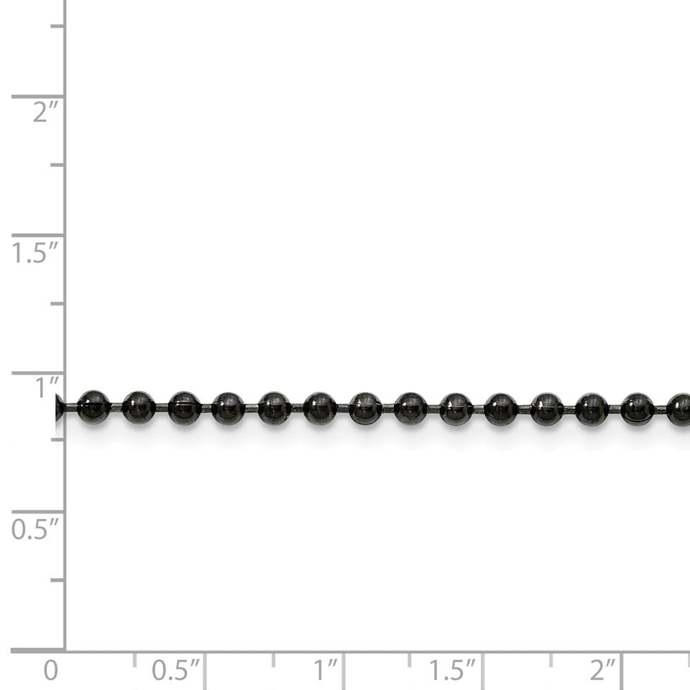 Small round beads gleam with a high polished finish along the 24 inch length of this black-plated stainless steel chain that measures 3mm in width and closes with a fancy lobster clasp.
