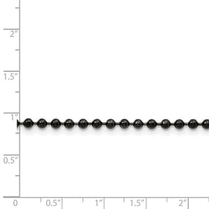 Small round beads gleam with a high polished finish along the 22 inch length of this black-plated stainless steel chain that measures 3mm in width and closes with a fancy lobster clasp.
