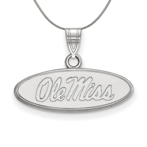 If you are a fan of The University of Mississippi and the Rebels then you need to show your school spirit with this University of Mississippi necklace. We are a certified college jewelry retailer and this authentic item is officially licensed. It is crafted from Sterling Silver and crafted by LogoArt in the USA. Includes a 20 Inch, 1.25mm sterling silver franco chain.