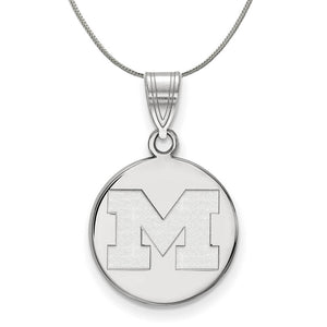 If you are a fan of The University of Michigan and the Wolverines then you need to show your school spirit with this University of Michigan necklace. We are a certified college jewelry retailer and this authentic item is officially licensed. It is crafted from Sterling Silver and crafted by LogoArt in the USA. Includes a 24 Inch, 1.25mm sterling silver franco chain.