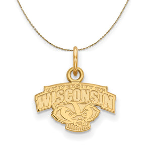 • If you are a fan of The University of Wisconsin and the Badgers then you need to show your school spirit with this University of Wisconsin pendant. We are a certified college jewelry retailer and this authentic item is officially licensed. It is crafted from 14k Yellow Gold and crafted by LogoArt in the USA. Includes a 30 Inch, 0.8mm 14k yellow gold cable chain with a lobster clasp.