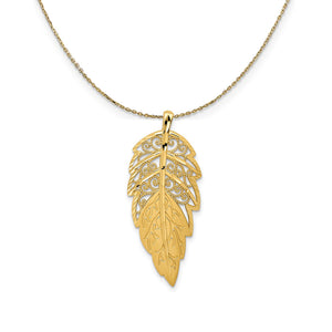 14k Yellow Gold Filigree and Diamond Cut Leaf Necklace - Black Bow Jewelry Company