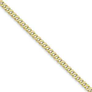 • Flat curb links of 10k gold enhanced with beveled edges form an attractive necklace that looks great layered with multiple chains or paired with a gold charm or pendant to complete your desired style. This one measures 2.2mm in width by 24-inches in length and closes with a lobster-claw clasp to keep it safely in place.