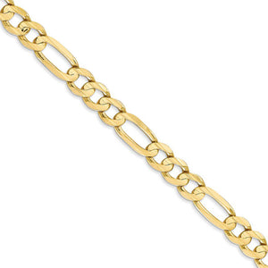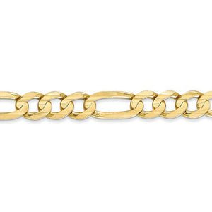 Known for its reoccurring three and one pattern, this stylish figaro chain with its solid link construction of 10k yellow gold features a bright, polished finish that adds lustrous appeal. It measures 6mm wide and fastens with a secure lobster-claw clasp. 22 inches in length.