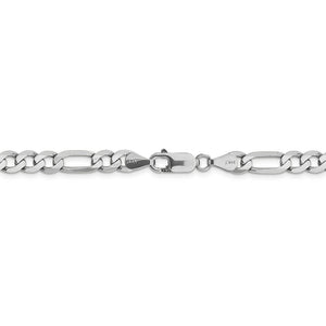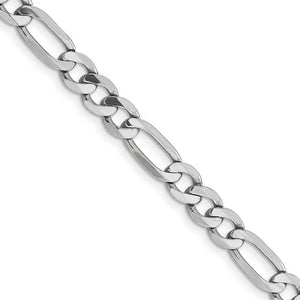 A set of three round links separated by one long oval link creates a sensational repeating pattern on this solid link, flat style figaro design. Measuring 6mm in width, this polished rhodium-plated 14k white gold chain is finished with a classic lobster-claw clasp. 22 inches in length.