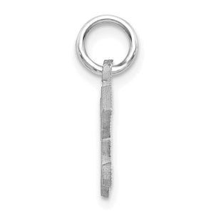 Create a sparkling initial impression with this satin finished 14k white gold charm featuring diamond cut accents that twinkle with every movement. Each letter measures approximately 10mm (3/8 Inch) in length and dangles from a classic jump ring that will fit up to a 3mm width chain. Made in the U.S.A. Chain not included.