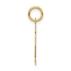 Celebrate your favorite sports player, lucky number or milestone date in your life with a prominent 14k yellow gold charm. Each laser-cut satin and polished number is approximately 12mm (7/16 Inch) in length, which is finished with a 3mm top bar and classic jump ring that will accommodate up to a 3mm chain. Made in the U.S.A. Chain not included.