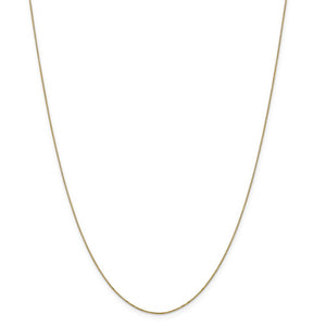 Simple, classic and ready for your favorite pendant, this delicate 14k yellow gold box chain is 0.5mm in width by 24 inches in length and closes with a spring ring clasp.