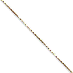 Simple, classic and ready for your favorite pendant, this delicate 14k yellow gold box chain is 0.5mm in width by 20 inches in length and closes with a spring ring clasp.