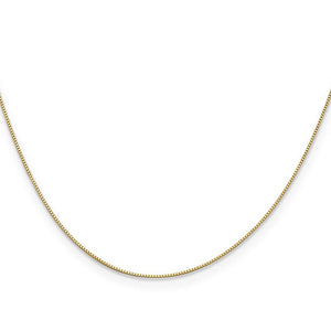Simple, classic and ready for your favorite pendant. This delicate 0.5mm width, 18-inch long, box chain necklace is created from nickel-free 14k yellow gold and closes with a lobster claw clasp.