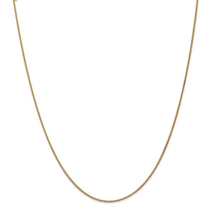 Solid polished links of 14k yellow gold are plaited together to create a delicate braided design for this 1.2mm width 20-inch long necklace chain that closes with a lobster claw clasp. While this style is not as flexible or liquid-like as some other styles, it will complement your favorite charm or pendant to perfection with its intricate design.