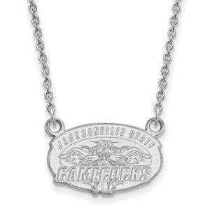 If you are a fan of Jacksonville State University and the Gamecocks then you need to show your school spirit with this Jacksonville State University necklace. We are a certified retailer and this authentic item is officially licensed. It is crafted from 10k White Gold and crafted in the USA. 18 inches in length. This item is not currently in-stock. Once you place your order, please allow us 5 to 7 business days to make it for you.