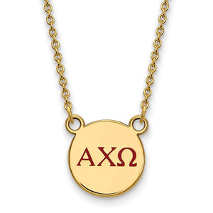 14K Plated Silver Alpha Chi Omega Small Red Enamel Greek Necklace