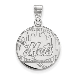 It is time to celebrate your favorite Major League Baseball (MLB) team, the New York Mets! We are a certified retailer, and this authentic unisex large laser-etched pendant is officially licensed. It is created from rhodium plated 14k white gold and approximately 18mm in width (about the size a dime). Chain not included. Made in the U.S.A. This item is not currently in-stock. Once you place your order, please allow us 5 to 7 business days to make it for you.