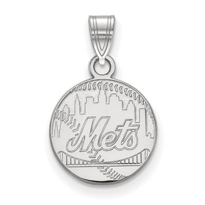 It is time to celebrate your favorite Major League Baseball (MLB) team, the New York Mets! We are a certified retailer, and this authentic women's small laser-etched pendant is officially licensed. It is created from rhodium plated 14k white gold and approximately 12mm in width (7/16 inch or smaller than a dime). Chain not included. Made in the U.S.A. This item is not currently in-stock. Once you place your order, please allow us 5 to 7 business days to make it for you.