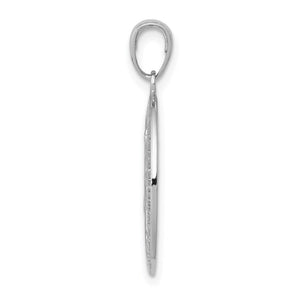 Celebrate and honor all special occasions with jewelry of religious significance! Our collection of spiritually inspired designs that show faith, hope and devotion are perfect for commemorating life's milestones. This x-small oval Miraculous medal pendant crafted in rhodium-plated 14k white gold features a solid, 2-sided embossed design. The approximate size is 8mm (5/16 inch) in width by 20mm (3/4 inch) in length with the bail. This item does not include a chain.