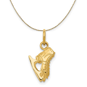 14k Yellow Gold 3D Pair of Ice Skates Necklace