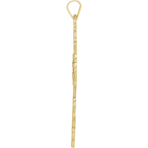 Celebrate and honor all special occasions with jewelry of religious significance! Our collection of spiritually inspired designs that show faith, hope and devotion are perfect for commemorating life's milestones. This Eastern Orthodox extra-large cross pendant crafted in 14k yellow gold features a black inlay design with a textured back. Not suitable for engraving. The approximate size is 26mm (1 inch) in width by 43mm (1 5/8 inch) in length with the bail. This item does not include a chain. This is a made to order item and is estimated to ship in about 6-8 days. Please email service@theblackbow.com for more details.