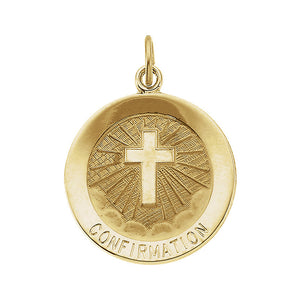 14k Yellow Gold Confirmation Medal Disc Charm or Pendant, 15mm