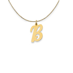 Indulge in a traditional initial charm that subtly enhances and personalizes your jewelry. Each classic script letter is approximately 16mm (5/8 inch) in length, fashioned from 14k yellow gold with a high polished finish and includes a standard jump ring. Includes a 20 inch long, 0.9mm wide, solid 14k yellow gold cable chain with a spring ring clasp.