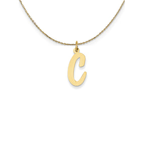 Indulge in a traditional initial charm that subtly enhances and personalizes your jewelry. Each classic script letter is approximately 16mm (5/8 inch) in length, fashioned from 14k yellow gold with a high polished finish and includes a standard jump ring. Includes a 24 inch long, 0.9mm wide, solid 14k yellow gold cable chain with a spring ring clasp.