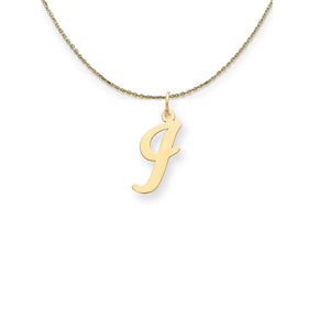 Indulge in a traditional initial charm that subtly enhances and personalizes your jewelry. Each classic script letter is approximately 16mm (5/8 inch) in length, fashioned from 14k yellow gold with a high polished finish and includes a standard jump ring. Includes a 20 inch long, 0.9mm wide, solid 14k yellow gold cable chain with a spring ring clasp. This is a made to order item, please allow 7-10 business days for shipping.