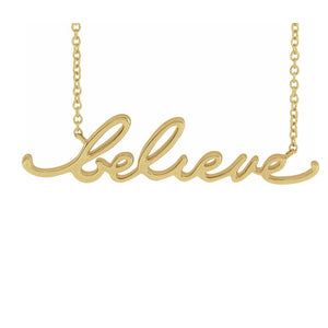 Category: 14K Yellow Gold 16 Inch 18 Inch Believe Necklace Novelty Womens Word Design