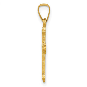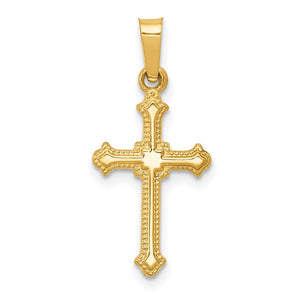 14k Yellow Gold Polished Hollow Fleur de Lis Cross Pendant