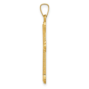 Celebrate and honor all special occasions with jewelry of religious significance! Our collection of spiritually inspired designs that show faith, hope and devotion are perfect for commemorating life's milestones. This fleur de lis cross pendant crafted in 14k yellow gold features a hollow, polished and textured design. The approximate size is 11mm (7/16 inch) in width by 24mm (15/16 inch) in length with the bail. This item does not include a chain.