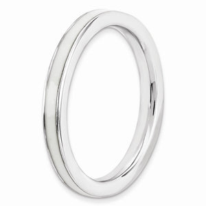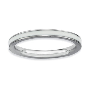 Create the perfect stack with enameled bands available in 10 vibrant colors. Featuring a center stripe of white enamel this 2.5mm sterling silver band is finished with tarnish resistant rhodium plating so it will retain its bright white finish. Guaranteed to fit together perfectly with all of the mix and match Stackable Expressions rings.