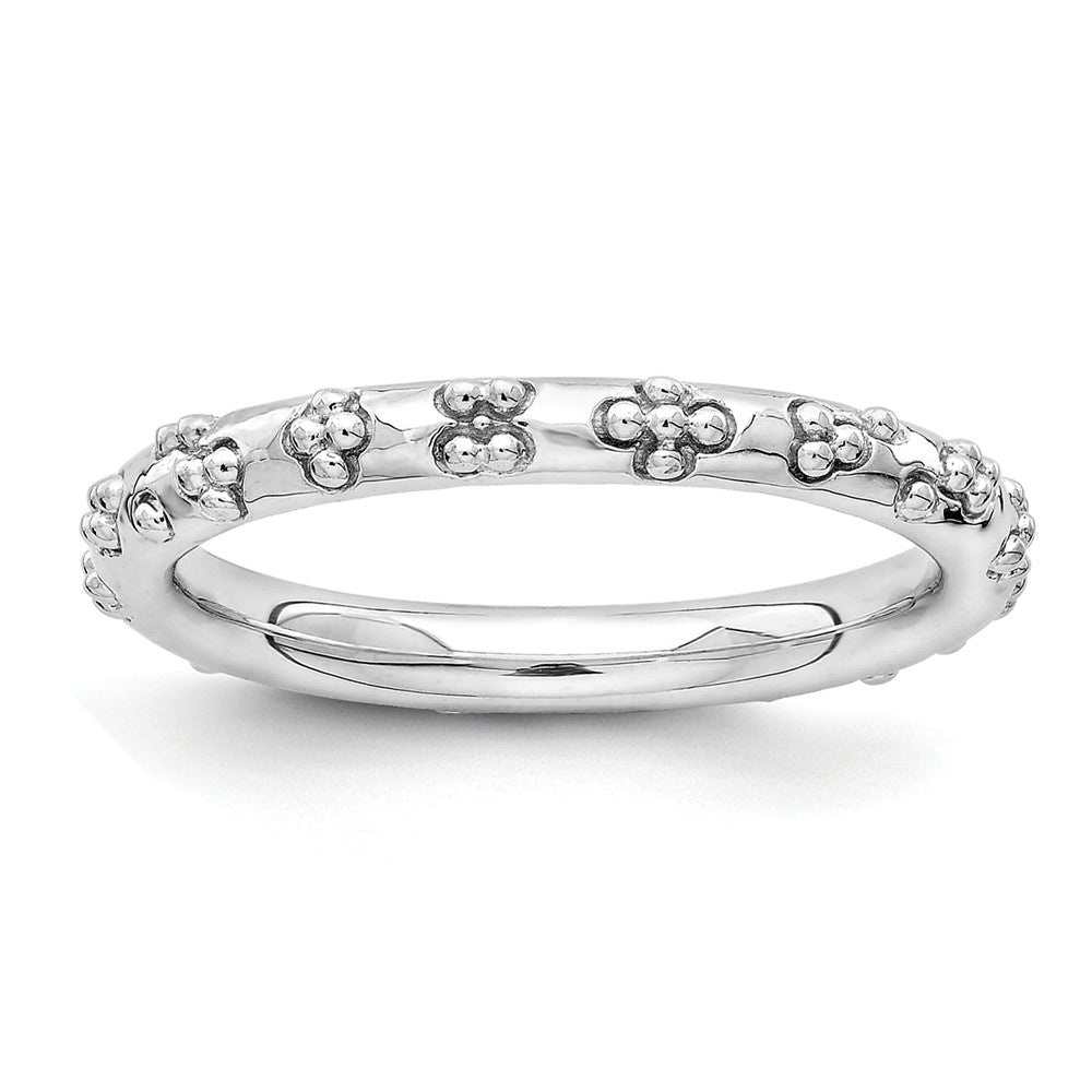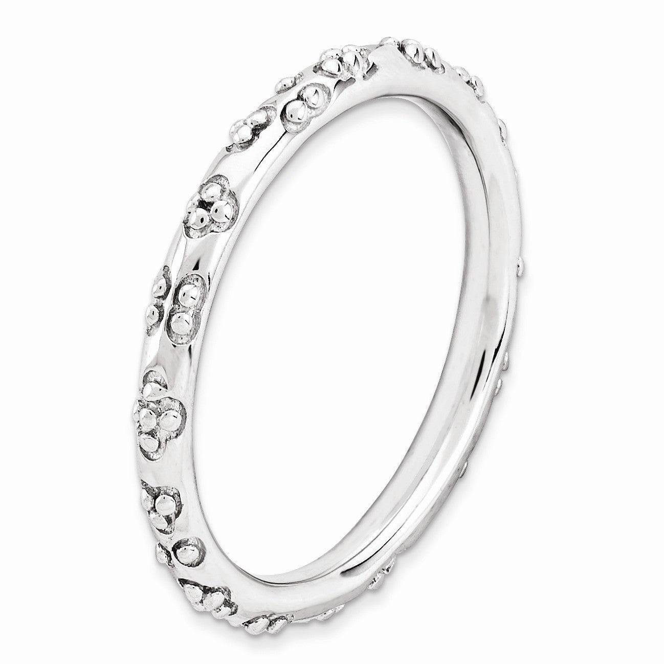 Make it simple and stylish with stackable bands of different textures, finishes, widths and colors! This tarnish resistant rhodium plated sterling silver band features a textured design with a polished finish that measures 2. Mm wide. Guaranteed to fit together perfectly with all of the mix and match Stackable Expressions rings.