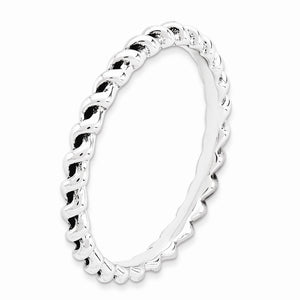 Make it simple and stylish with stackable bands of different textures, finishes, widths and colors! This rhodium plated sterling silver band features an antiqued twist design that measures 2. Mm wide. Guaranteed to fit together perfectly with all of the mix and match Stackable Expressions rings. This item is backordered. Please allow 7-10 business days for delivery