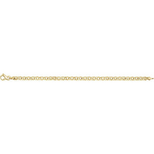 This classic paralleo cable chain bracelet features solid, open, double links ideal for hanging charms. It is fashioned from 14k yellow gold, is 4.5mm in width by 7-inches in length and closes with a fancy lobster clasp.