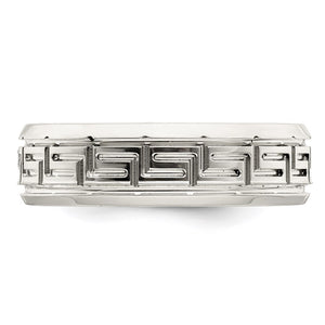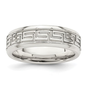 Refine your style with a distinctive ring crafted from polished sterling silver that mirrors your unique personality. This 6mm width flat band features a grooved Greek Key design, beveled edges, and a standard fit shank. Suitable for engraving. Made in the U.S.A.