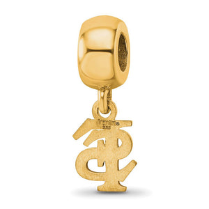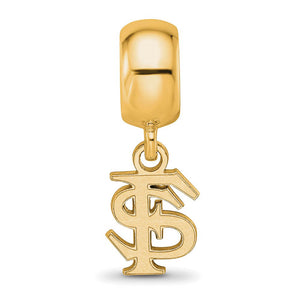 Show your school spirit with this Florida State University bead charm. It is crafted from 14k yellow gold plated sterling silver and measures 19 mm in length. We are a certified Collegiate jewelry retailer and this authentic item is officially licensed. These made in the USA bead charms are compatible with and will fit most major brand, 3mm width, bead style bracelets and necklaces. This item is not currently in-stock. Once you place your order, please allow us 5 to 7 business days to make it for you.