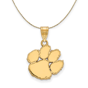 If you are a fan of Clemson University and the Tigers then you need to show your school spirit with this Clemson University pendant. We are a certified college jewelry retailer and this authentic item is officially licensed. It is crafted from 14k Yellow Gold and crafted by LogoArt in the USA. Includes a 30 Inch, 0.8mm 14k yellow gold cable chain with a lobster clasp.