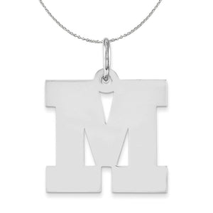 Indulge in a traditional initial charm that subtly enhances and personalizes your jewelry. Each block style letter is approximately 16mm (5/8 inch) in length, is finished with a jump ring, and fashioned from sterling silver with a high polished finish. This is a made to order item, so please allow approximately 7-10 additional business days for shipping. Includes a 1.25mm, 20 inch sterling silver cable chain.