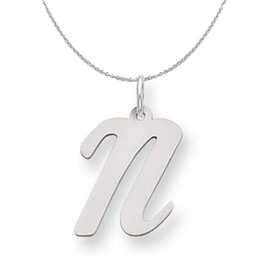 Indulge in a traditional initial charm that subtly enhances and personalizes your jewelry. Each classic script letter is approximately 18mm (11/16 inch) in length, fashioned from sterling silver with a high polished finish and includes a standard jump ring. Includes a 20 Inch, 1.25mm sterling silver cable chain with a lobster clasp closure.