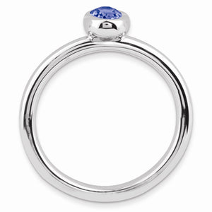 Created Sapphire, September's birthstone symbolizes truth, faithfulness and honesty bringing calmness and peace. This 2.5mm polished band fashioned from rhodium plated sterling silver is bezel set with a faceted gemstone that will add vibrant color and sparkle to your finger. Guaranteed to fit together perfectly with all of the mix and match Stackable Expressions rings.