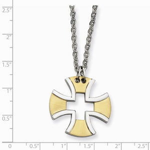 Stainless Steel and Gold Tone Maltese Cross Necklace - 18 Inch