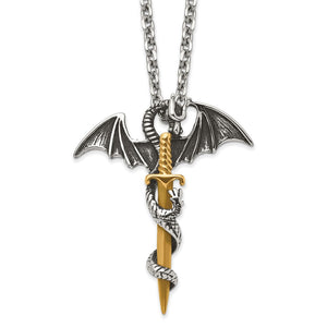 Stainless Steel & Gold Tone Plated Large Dragon Sword Necklace, 24 In