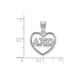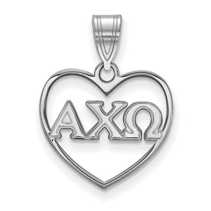 Sterling Silver Alpha Chi Omega Heart Greek Letters Pendant