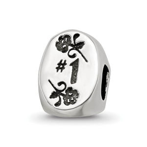 A simple message with a big impact! Share your feelings with our 3-sided oval charm inscribed especially for mothers with I love you, #1 and Mom. Handcrafted from sterling silver to last a lifetime, this single expressive charm accented with roses measures approximately 7mm in width by 10mm in length. It features a 4mm bead hole that is interchangeable as well as compatible with Reflections and other popular 3mm width bead style bracelets and necklaces.