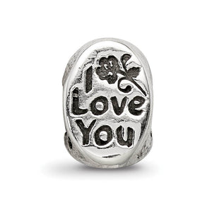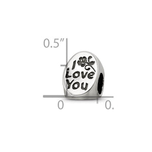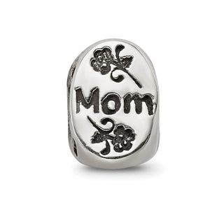 Sterling Silver I Love You Mom 3-Sided Bead Charm - Black Bow Jewelry Company
