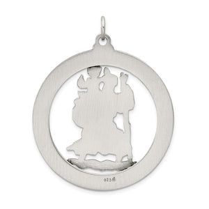 Celebrate and honor all special occasions with jewelry of religious significance! Our collection of spiritually inspired designs that show faith, hope and devotion are perfect for commemorating life's milestones. This large St. Christopher (patron saint of travelers and motorists) pendant crafted in sterling silver features a solid, cutout, embossed design. The approximate size is 38mm (1 1/2 inch) in diameter. This item does not include a chain.